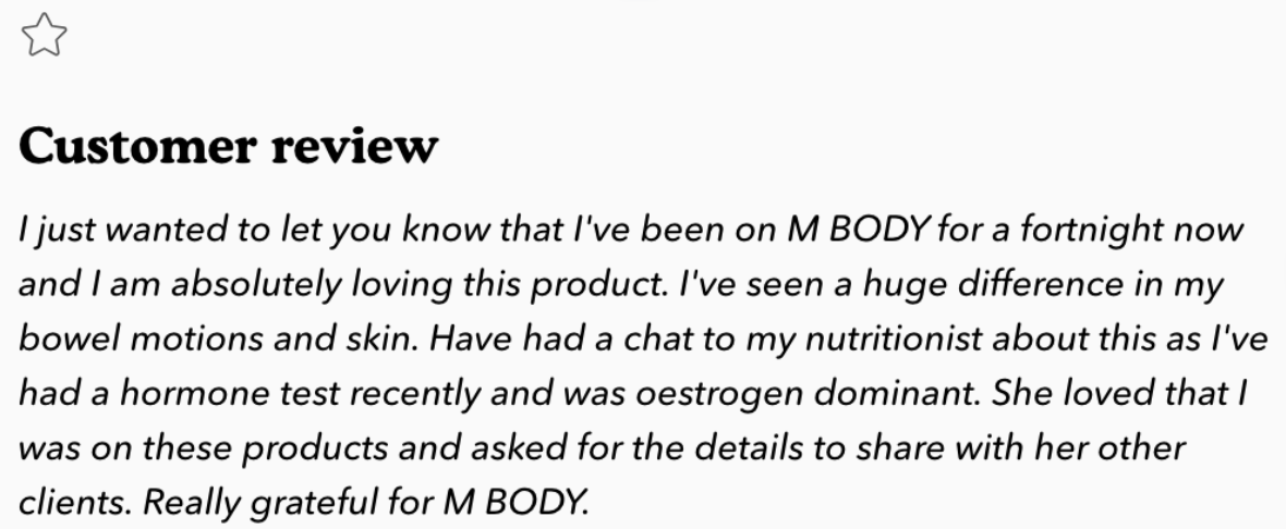 *This is not medical advice. M BODY has not been approved for use during pregnancy or breastfeeding by the TGA